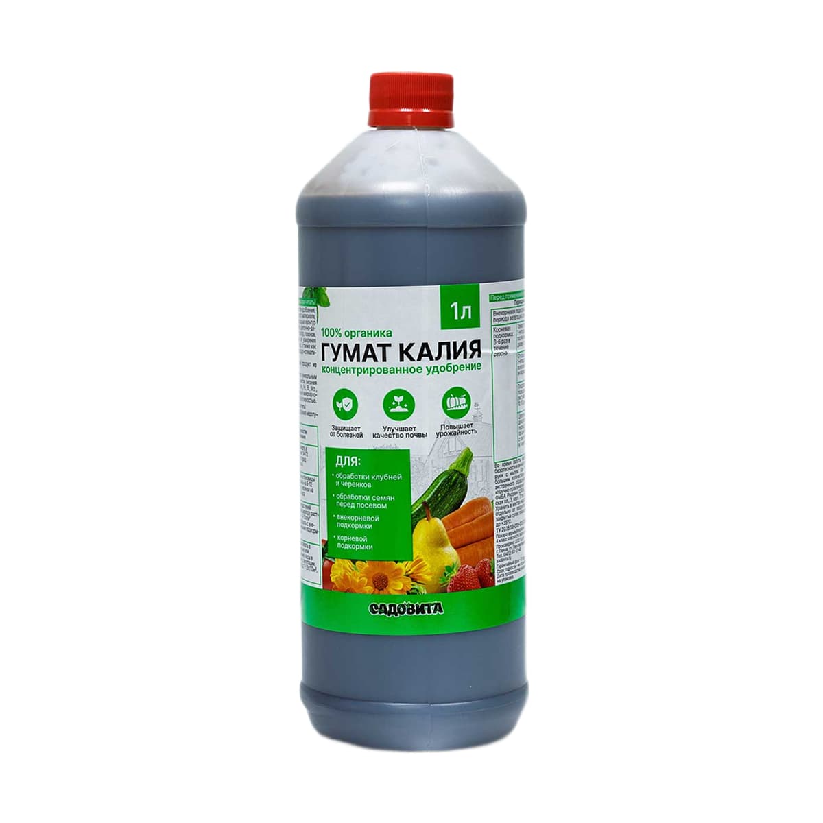 Гумат калия универсальный «Садовита» — жидкое органоминеральное удобрение высокой концентрации, выработанное на основе гуминовых кислот из торфа. Предназначено для комплексной поддержки овощных, плодовых, цветочных и декоративных культур, включая хвойные и ягодные растения, в открытом и защищённом грунте.