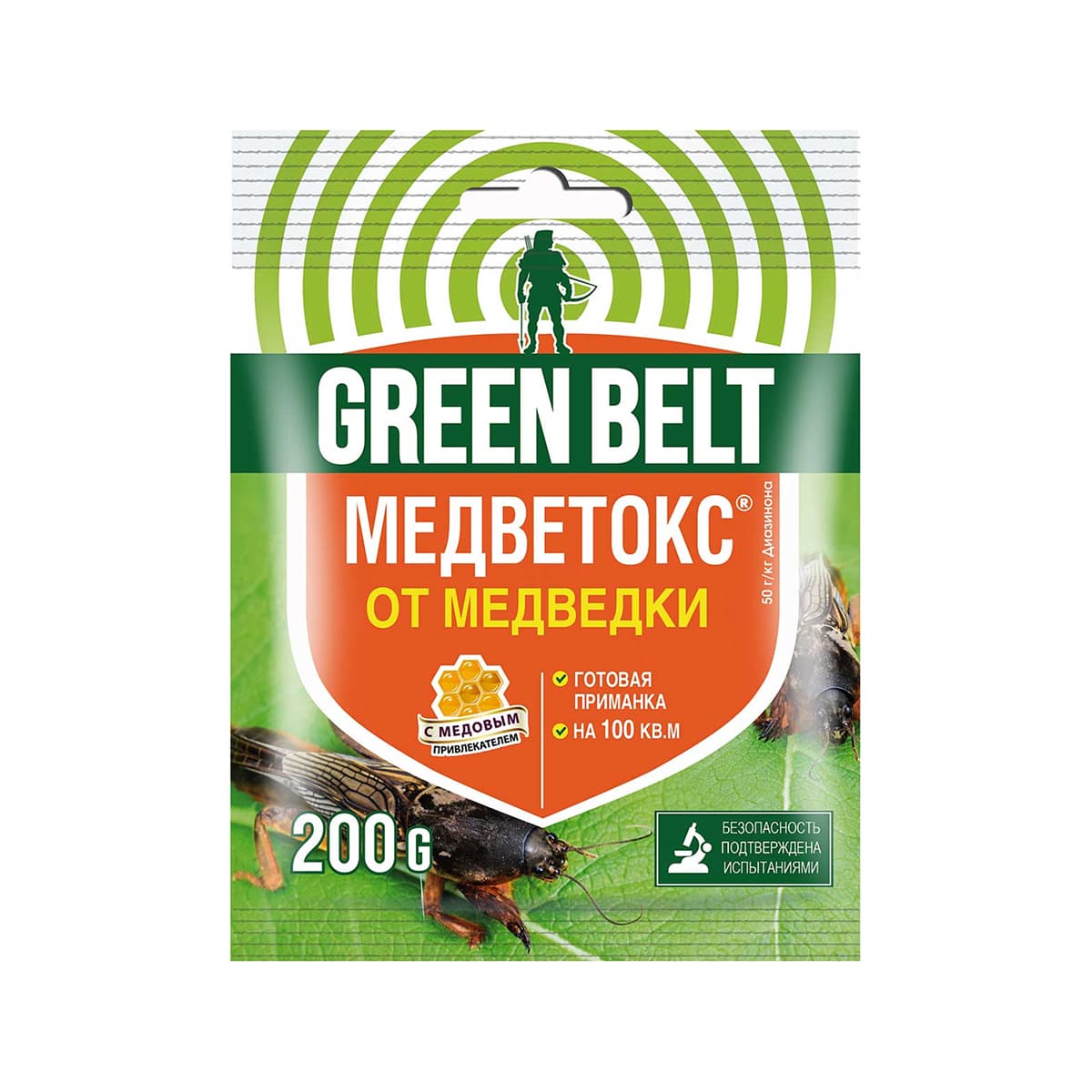 Green Belt Медветокс — готовые красные гранулы с медом-приманкой для уничтожения медведки и садовых муравьев. При поедании вредитель гибнет (1 гранула = 1 особь), часто выползая на поверхность. Гранулы вносить в почву на глубину 3-5 см: для картофеля и цветов — заделка в период вегетации; для корнеплодов и рассады — размещение в борозды 3 см с засыпкой землей и обильным поливом. Норма расхода: 20-30 г/10 м² (30 г — для картофеля/цветов или при сильном заражении). Повтор: через 1 месяц (не позднее 60 дней до урожая). Класс опасности: 3.
