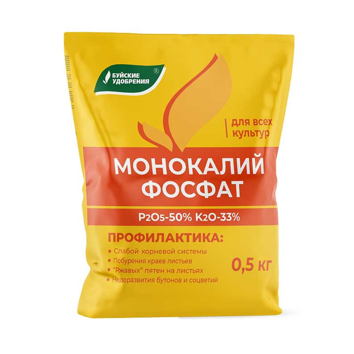 Монофосфат калия (монокалийфосфат) от производителя «Буйские удобрения» — водорастворимое фосфорно-калийное удобрение для подкормки овощных, плодово-ягодных, декоративных, хвойных и цветочных культур в открытом и защищённом грунте.