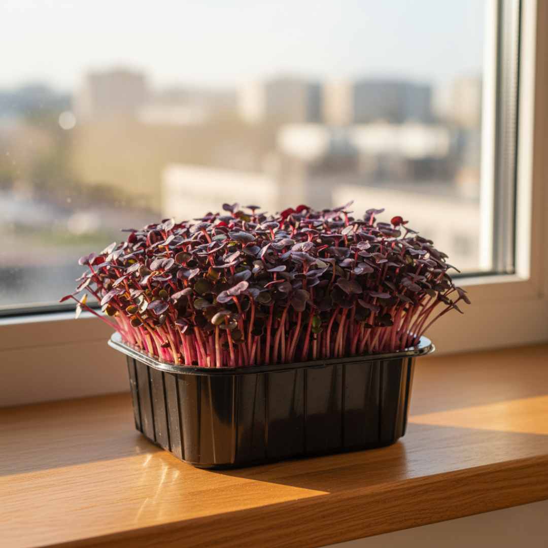 Стоит начать проращивать микрозелень фиолетового редиса Санго ради сочного, свежего и слегка острого вкуса молодого редиса, особенно хорошо сочетается с сырами и белковыми блюдами. Можно выращивать микрозелень редиса Санго как в домашних условиях, так и на сити фермах.