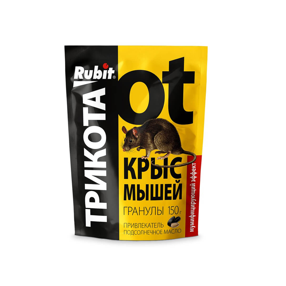 ТриКота гранулы с подсолнечным маслом от производителя Rubit – высокоэффективное средство для уничтожения крыс и мышей. Действующее вещество бродифакум обеспечивает надежную защиту даже против устойчивых к другим ядам грызунов. Гранулы обладают высокой привлекательностью благодаря добавлению подсолнечного масла.