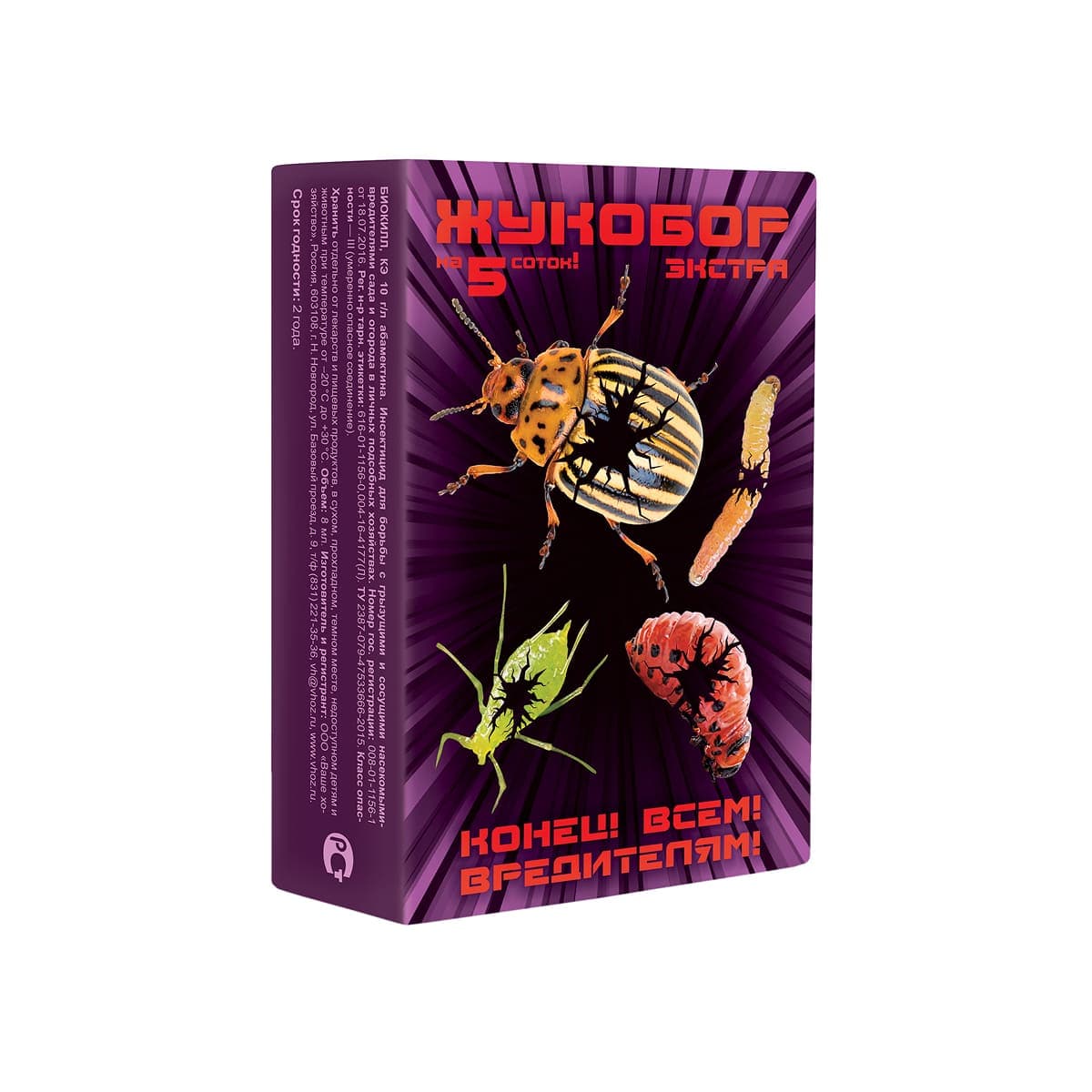Инсектицид "Жукобор Экстра" эффективно борется с грызущими и сосущими вредителями в садах и огородах ЛПХ. Препарат гарантированно уничтожает устойчивые популяции, включая южные регионы и Черноземье. Относится к 3 классу опасности. Требует хранения отдельно от лекарств и пищевых продуктов в сухом, прохладном, темном месте, недоступном детям и животным.