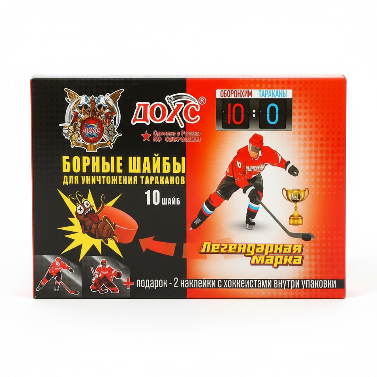 Комплект содержит 10 борных приманок с действующим веществом – борной кислотой (2%). Изготовлены в форме спрессованных таблеток-шайб, диаметром 2,8–3 см, вес каждого брикета — около 7 грамм.