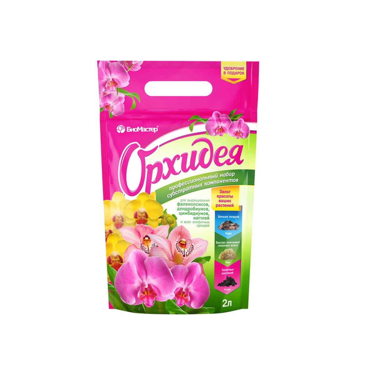 Грунт для Орхидей 2 л + удобрение 5 мл от производителя «БиоМастер» представляет собой специализированный набор субстратных компонентов для эпифитных орхидей. Состав включает кору хвойных пород, мох сфагнум и древесный уголь, обеспечивающие идеальную аэрацию и дренаж. Грунт предотвращает заболачивание и загнивание корней, создавая оптимальные условия для развития корневой системы и продолжительного цветения. В комплекте идет флакон удобрения объемом 5 мл для стартовой подкормки после пересадки. Подходит для всех видов орхидей (фаленопсисов, каттлей, дендробиумов). Готов к использованию, не требует дополнительной обработки.