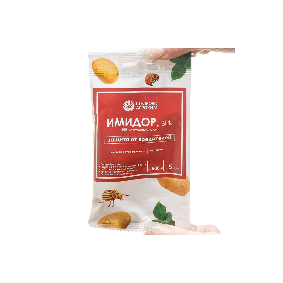 Системный препарат против колорадского жука и его личинок на картофеле. Уничтожает вредителей за 24 часа, обеспечивает длительную защиту без привыкания. Эффективен в жару, устойчив к смыванию. Действующее вещество проникает в листья, распространяется по растению, обеспечивая долгосрочную защиту. Рекомендованное количество препарата развести сначала в малом объеме воды, затем довести водой до требуемого объема. Обработку проводить вечером в безветренную погоду (стандартное требование для инсектицидов). Класс опасности: 3 (умеренно опасный).
