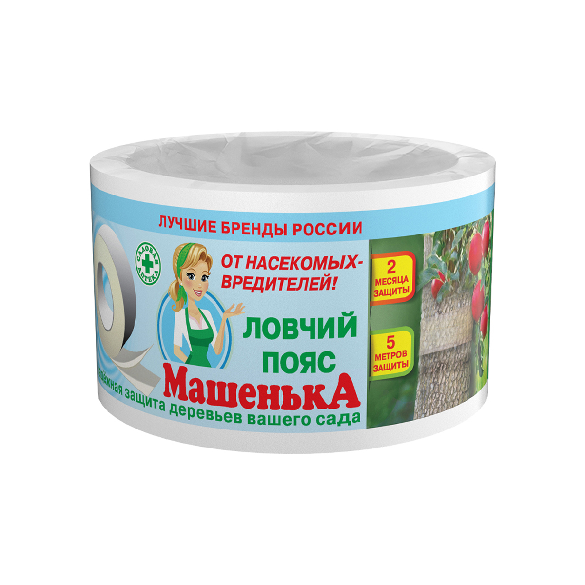 «Ловчий пояс Машенька 5 м» — двухсторонняя клейкая лента для защиты плодовых деревьев от садовых вредителей. Изготовлен из нетканого полотна с нанесенным долгосрочным клеевым слоем, устойчивым к влаге и солнцу. Принцип действия: Насекомые (муравьи, гусеницы, долгоносики, плодожорки) физически прилипают к поверхности при попытке подняться по стволу.
