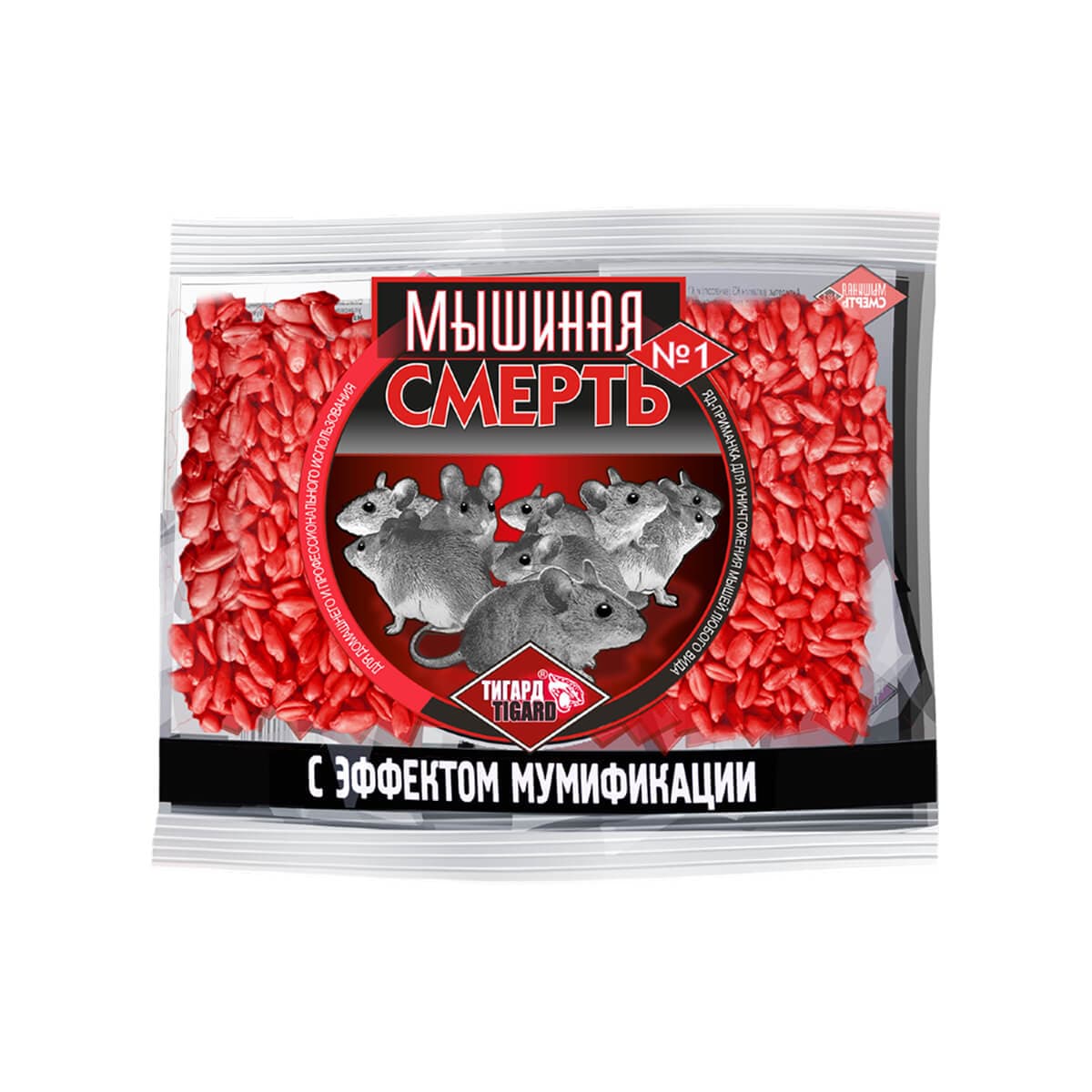 Мышиная смерть №1 от производителя «Оборонхим» – готовая зерновая приманка с эффектом мумификации для уничтожения всех видов грызунов. Содержит действующее вещество дифенацин (0,015%), вызывающее нарушение свертываемости крови и гибель грызунов на 3-7 сутки. Яркий цвет и горькая добавка «битрекс» предотвращают случайное употребление людьми и домашними животными.