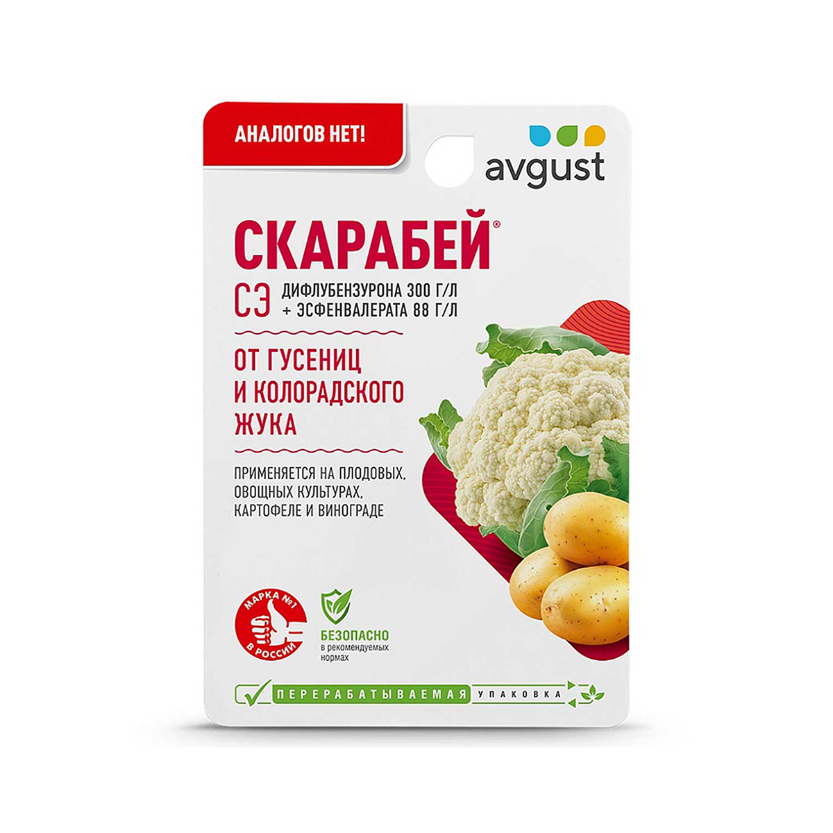 Скарабей – двухкомпонентный инсектицид мгновенного действия против листогрызущих вредителей. Уничтожает вредителей (включая листовертку, плодожорку, совку, саранчу) на всех стадиях развития (яйца, личинки, имаго) уже через 30 минут после обработки. Комбинация дифлубензурона (300 г/л) и эсфенвалерата (88 г/л) из разных химических классов исключает привыкание. Препарат устойчив к высоким температурам и УФ-излучению, что позволяет эффективно применять его на открытых участках. Обеспечивает надежную защиту посевов и насаждений.