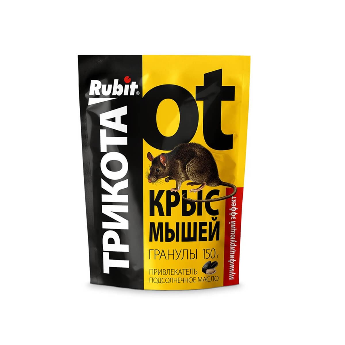 ТриКота гранулы с подсолнечным маслом от производителя Rubit – высокоэффективное средство для уничтожения крыс и мышей. Действующее вещество бродифакум обеспечивает надежную защиту даже против устойчивых к другим ядам грызунов. Гранулы обладают высокой привлекательностью благодаря добавлению подсолнечного масла.