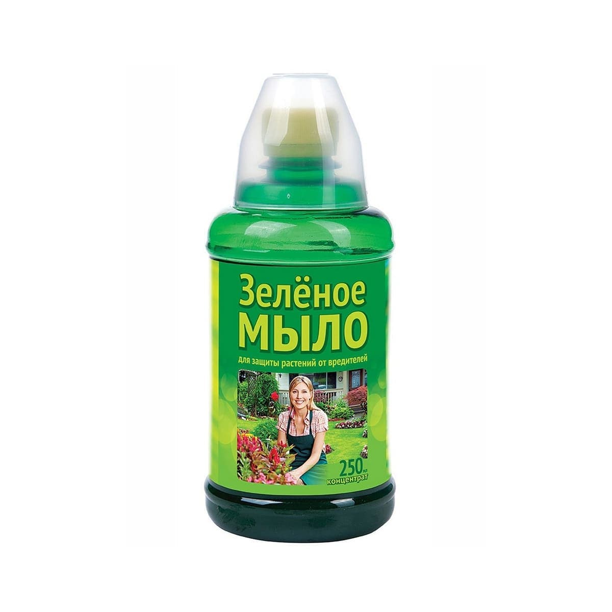 «Зеленое мыло» — контактное средство от сосущих вредителей (тли, трипсы, щитовки, клопы, пенница) и усилитель пестицидов. Дозировки: тли/пенница: 200-400 г/10 л; трипс: 100 г/10 л; щитовки: 200-300 г/10 л; клопы: 250 г/10 л + скипидар (1 ч.) и керосин (2 ч.) на 12 ч. воды. Обработка: 1-3 раза за сезон (щитовки — 2 недели). Срок ожидания для тли/трипса/пенницы: 5 дней до урожая; пенница дополнительно до цветения/после сбора. Образует защитную пленку, совместимо с химикатами. Класс опасности: 4.